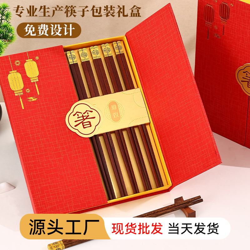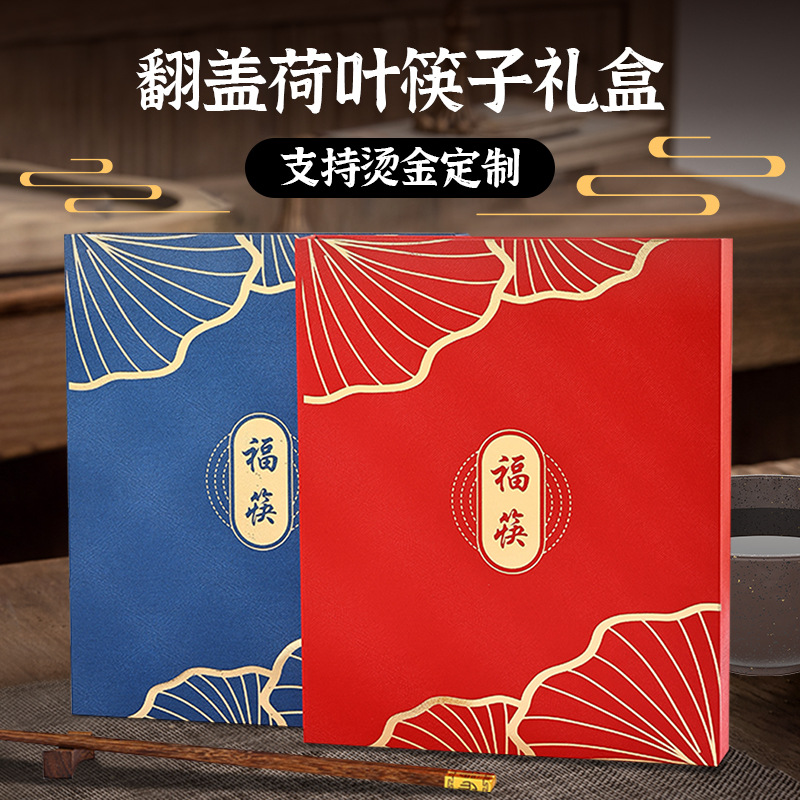新しい両开きギフトボックス10両入箸包装ボックスお祝い家庭用両开き箸ギフトボックス箔押しギフトボックス