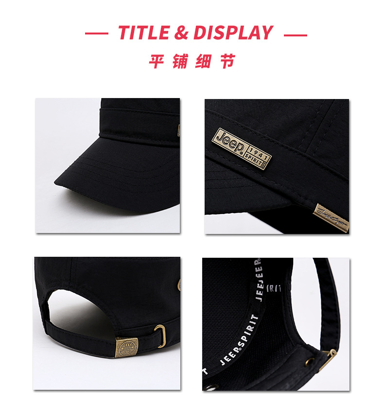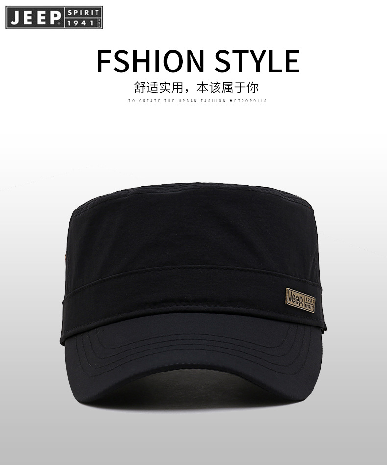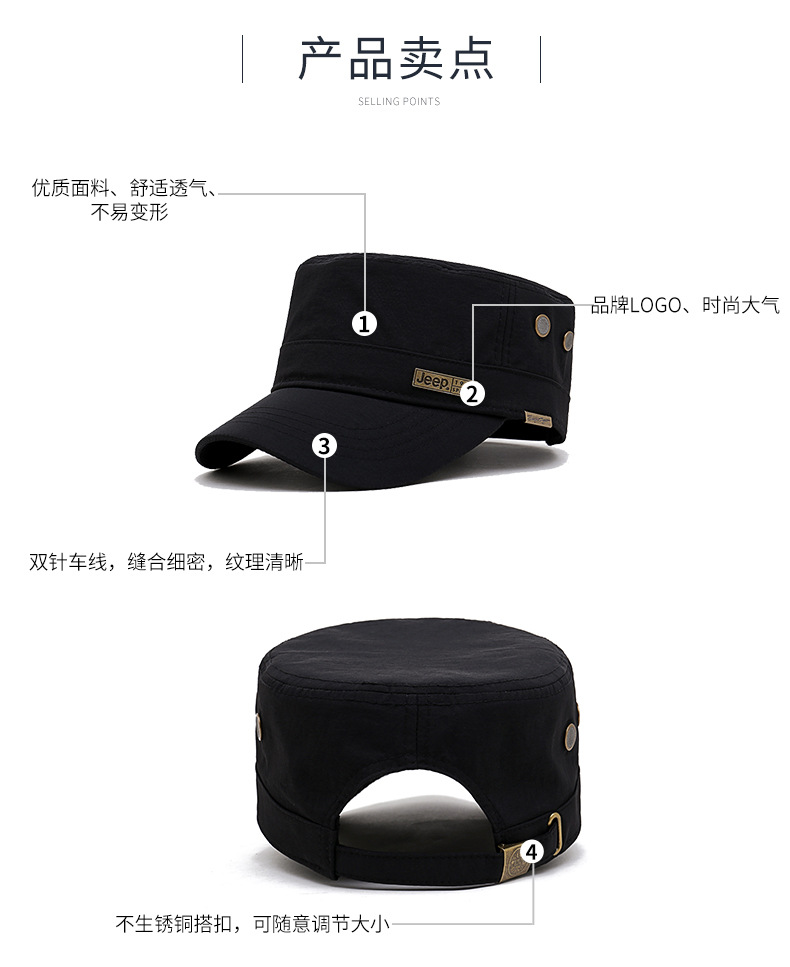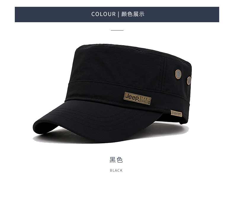 男士四季款西服布料平顶帽子中年商务金属方标古典高雅弯檐太阳帽