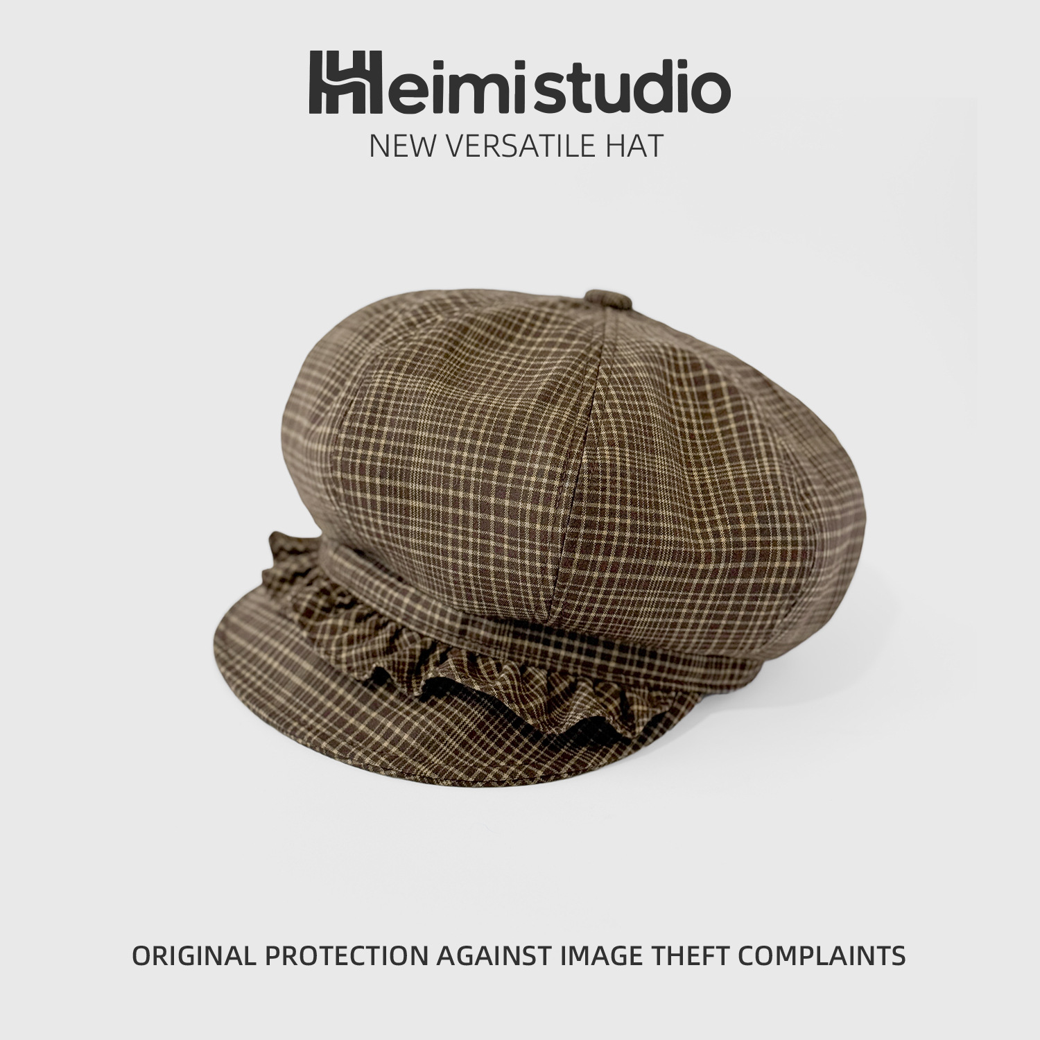 批发25年早秋新款日系复古优雅格纹褶皱边贝雷帽女显脸小八角帽子