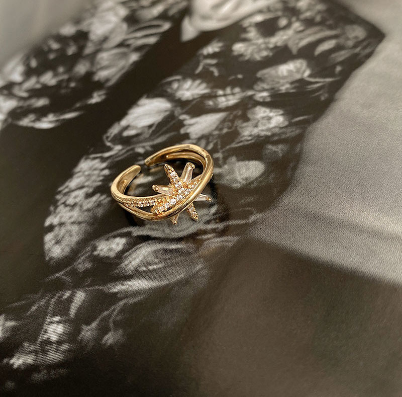 高級感ジルコン八芒星指輪女性の軽豪華なデザイン感があります。