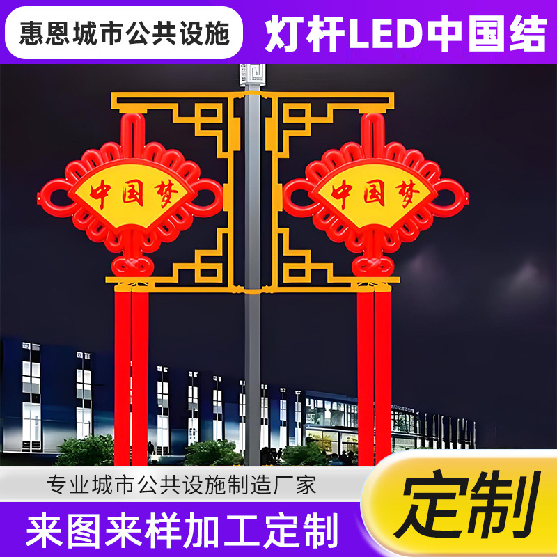 户外led发光中国结灯笼中国梦福字路灯杆装饰挂件亚克力中国结灯