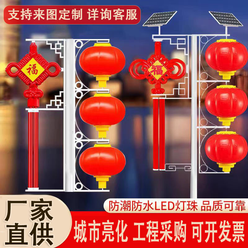 LED中国結び路灯屋外照明工事街路灯ポール景観灯吊り下げ飾り市街地祝祭提灯ソーラー