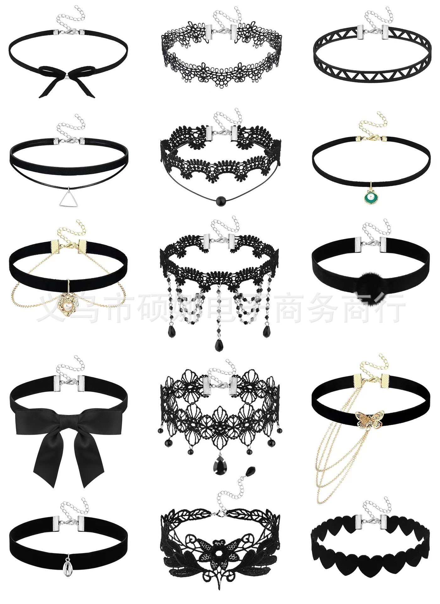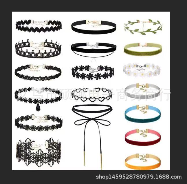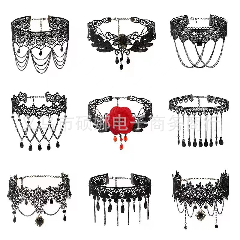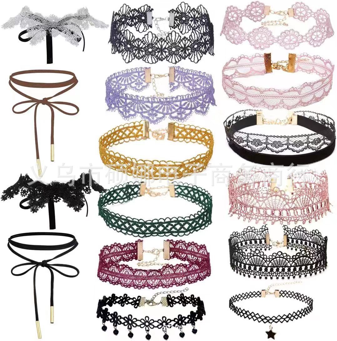 首輪の女性choker鎖鎖アクセサリー首帯個性首鎖首鎖レースネックレスセット卸売り