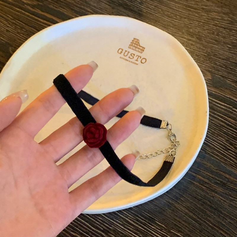 酒の赤いバラのchokerの首の鎖 ~ ギャルの雰囲気感の首輪の女性の小さい大衆の設計感のベルベットのネックレスの2023新