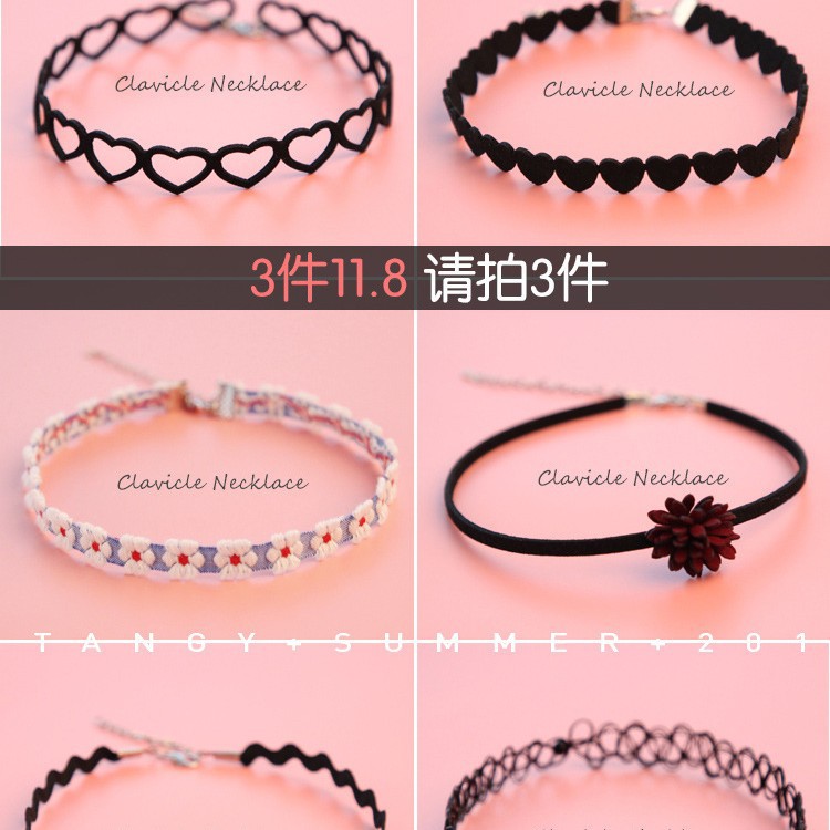 日韓版ファッションchoker首輪女性首バンド鎖骨鎖ネット赤ショートレース超仙首アクセサリー黒