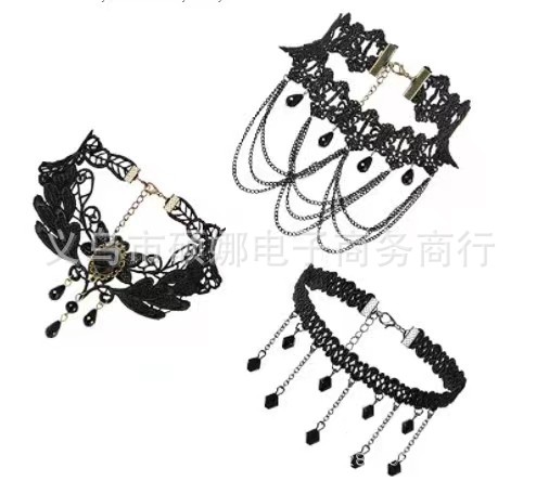 クロスボーダー新品レースレトロ鎖骨鎖フリンジチョーカーゴシックネックチェーンロリネックレスセット首輪女