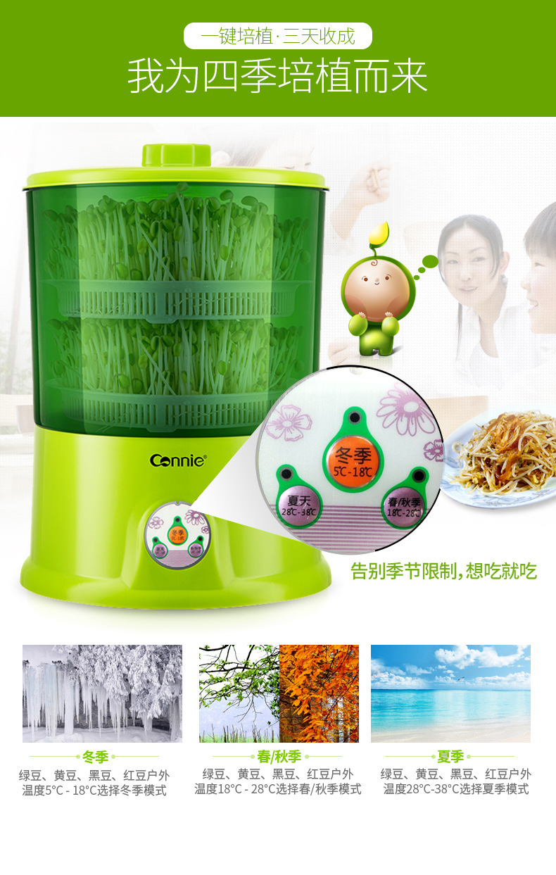 厂家批发各式多功能豆芽机、价格实惠、质量上乘。欢迎各界人士前来咨询定购。