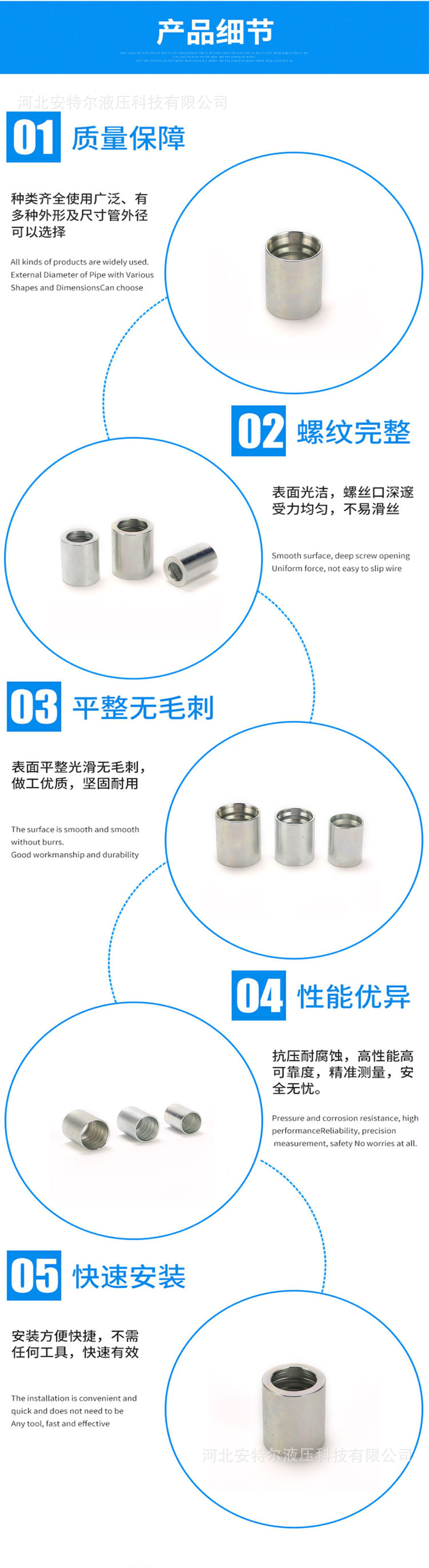 高圧油管圧着式スリーブシェル6/8/10/13/25mm油圧鋼線ゴム管押さえ継手