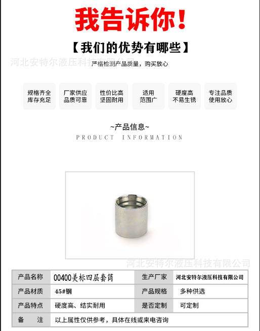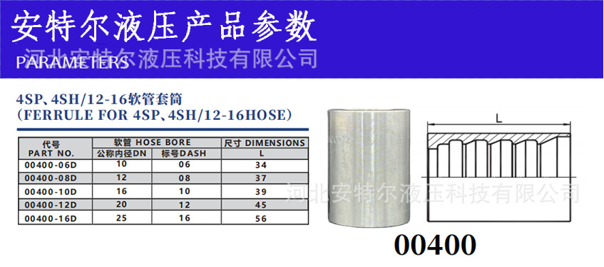 00400ferrule適合4sh4sp油圧ゴムチューブ美標非剥離ゴム四層鋼線編組スリーブ