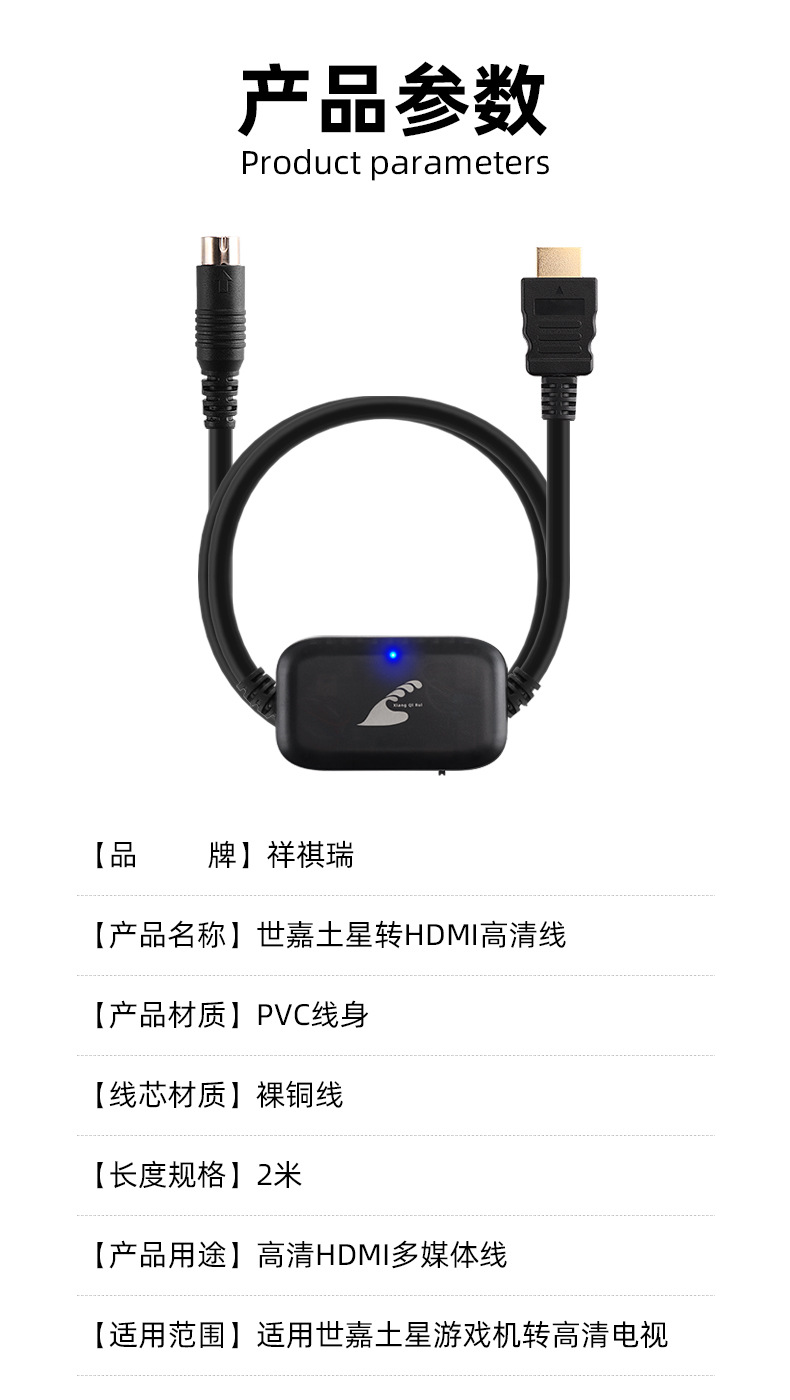 工場直販 高品質土星からHDMiへの高解像度ケーブル 2m (1080P)