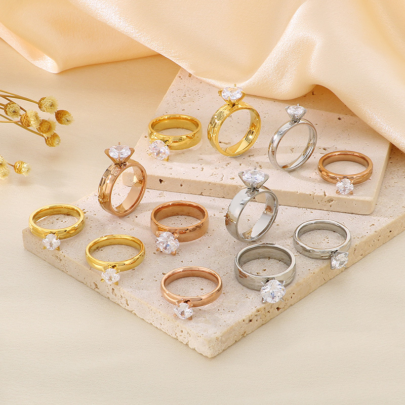 外国貿易供給ステンレス鋼ジュエリーファッショナブルでシンプルなジルコンリング4本爪クリエイティブジルコンリング卸売