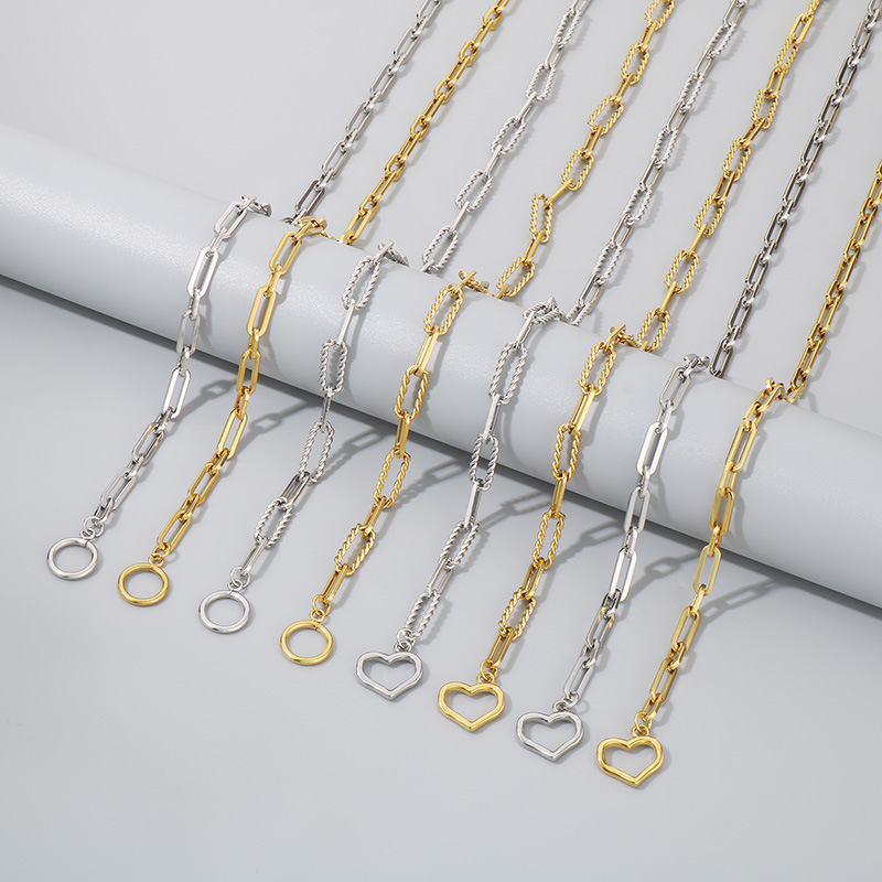 ファッション流行ステンレスo字鎖一字鎖鎖中性風5/7mm方形鎖ハート形ot鎖ネックレス