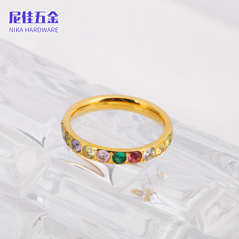 カードホイール新型日韓風ステンレスファッション水晶ガラス女性の多色指輪メッキ18k金指環アクセサリー