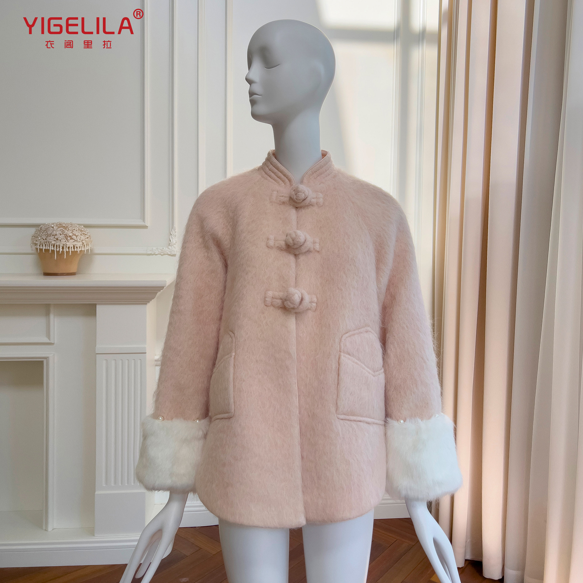 衣阁里拉2025秋冬新品粉色气质长款收腰显瘦保暖毛呢外套女 91603