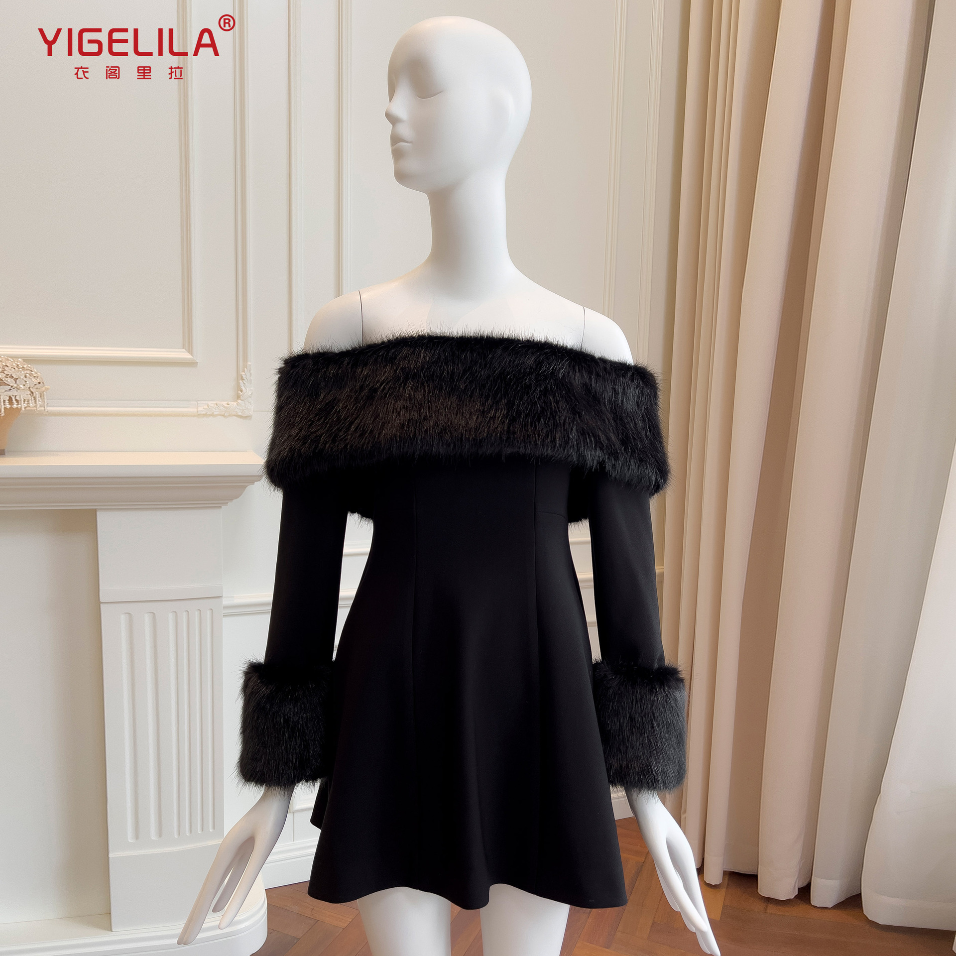 純欲風ギャルの肩は毛羽立ちの襟をつなぎ合わせてスリムに見えるショートスカートの女性のセクシーな修身ワンピース68935