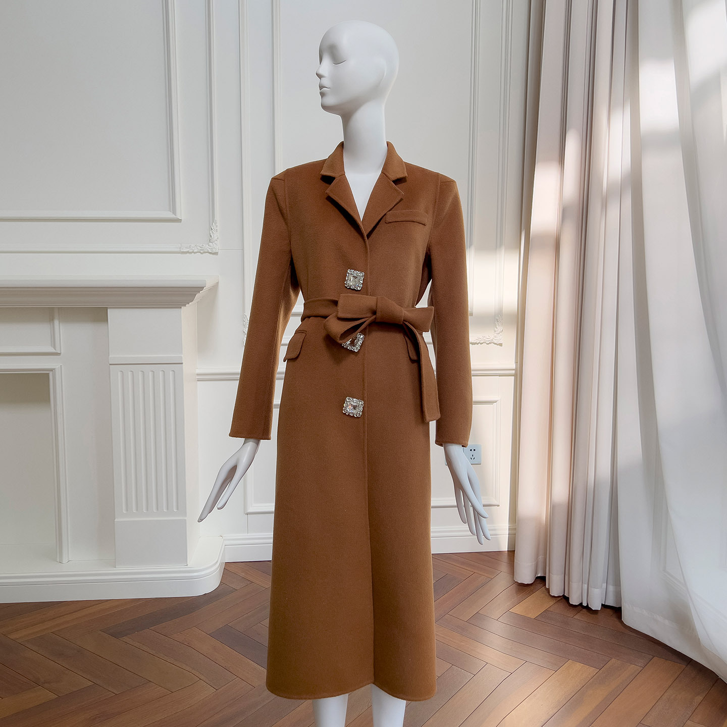 秋冬新款时尚双面呢长款大衣保暖外套名媛风钻扣羊毛大衣女91628