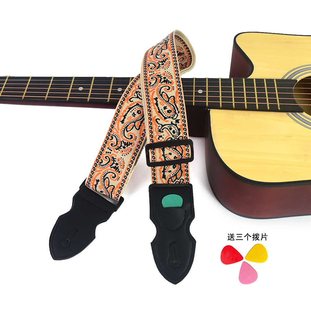 吉他背带民族风吉他肩带皮革加厚加宽木吉他电吉他涤纶印花背带