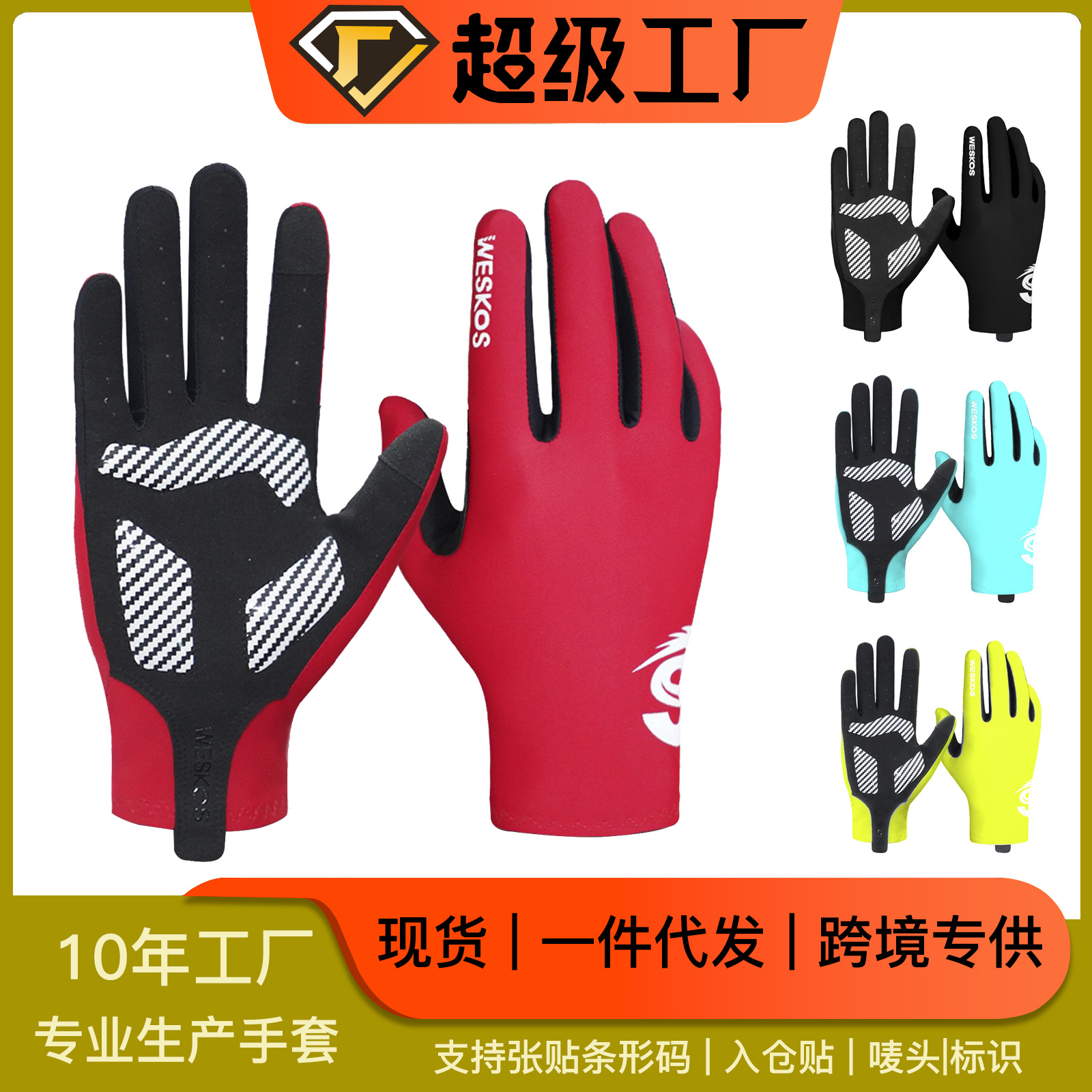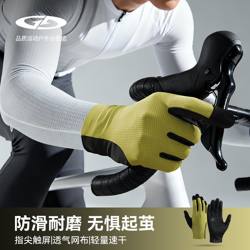厳選されたサイクリンググローブ、屋外自転車、滑り止め、衝撃吸収、フルフィンガータッチスクリーン、春夏の薄いシリコンランニンググローブ