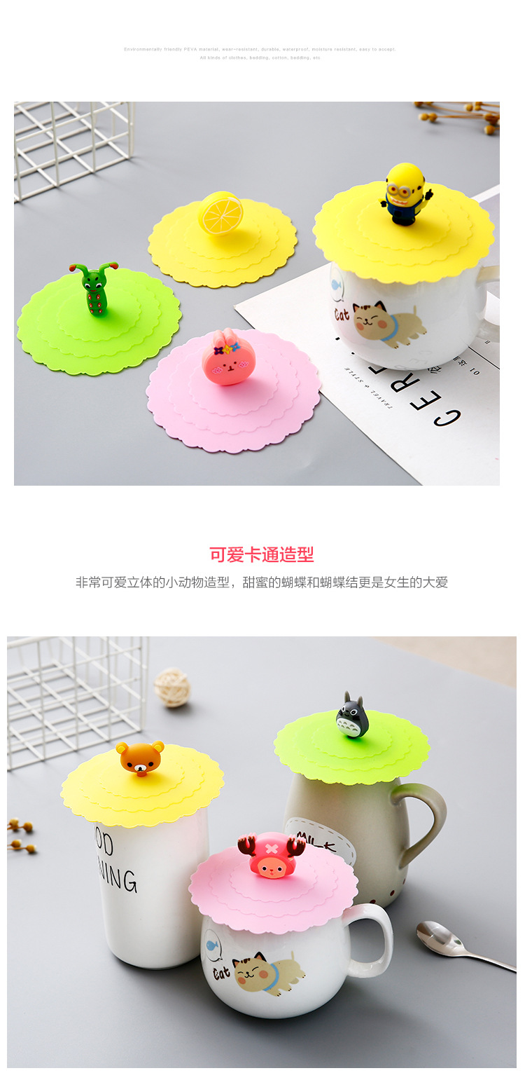 カップ蓋防塵シリコンカップ蓋食品級アニメ陶磁器カップ蓋通用ティーカップ蓋保存蓋