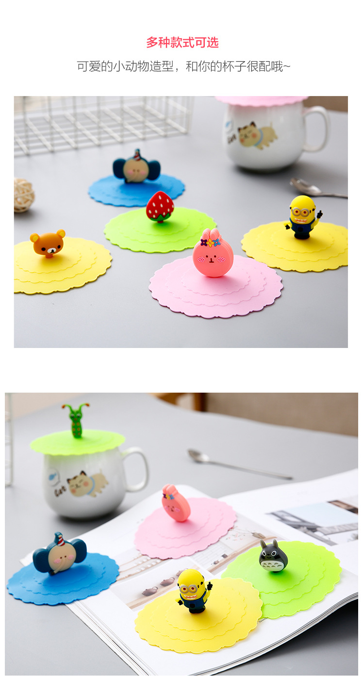 新型かわいい防塵防漏多機能カップ蓋密封コップ蓋創意漫画シリコン蓋卸売り