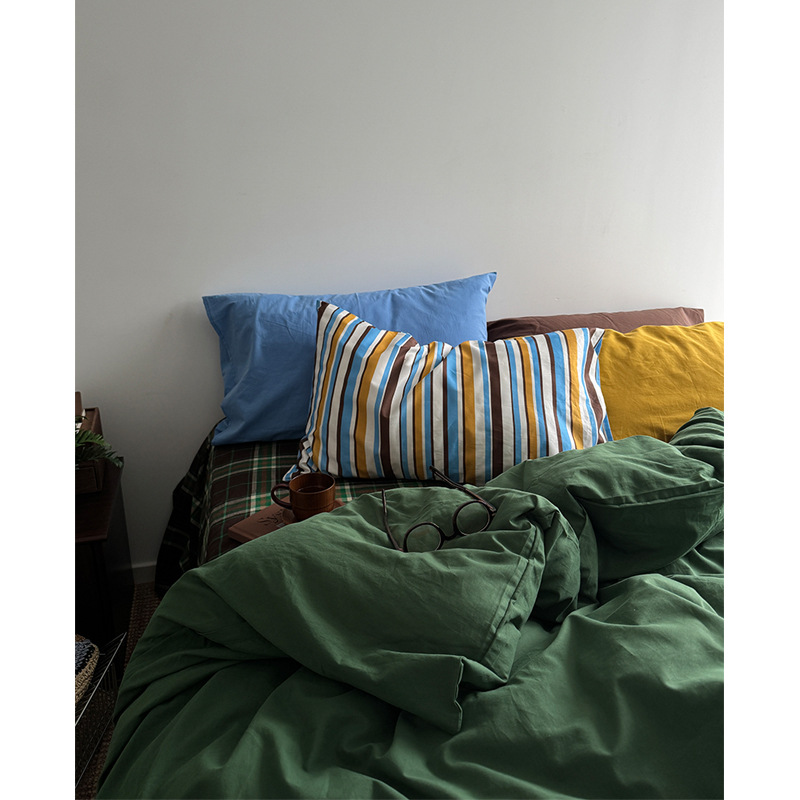 中古风全棉色织水洗棉四件套条纹混搭床单被套100纯棉宿舍三件套4