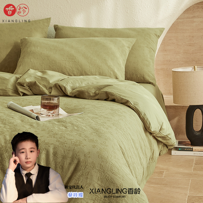 【香齢優品】A級春ジャカード三層ガーゼ純綿三四点セット 綿100%ベッドシーツ・掛け布団カバー・寝具
