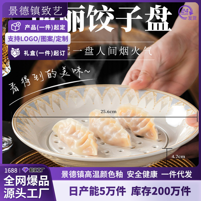 水切りギョーザ皿新型家庭用大型ギョーザ皿陶磁器水饺子皿餃子専用皿を食べて油を切る