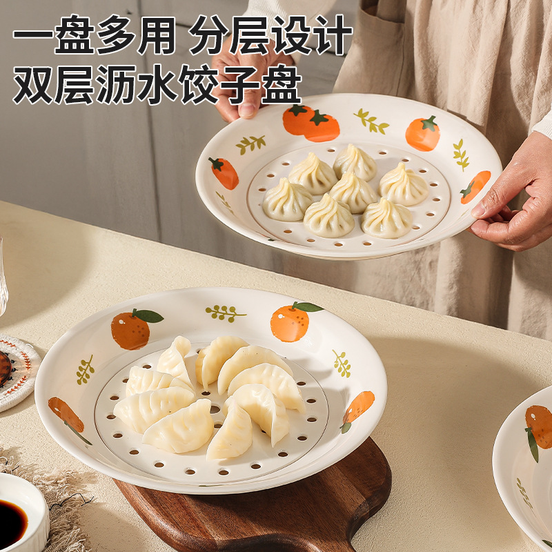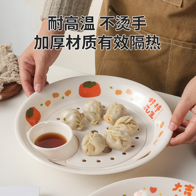 家庭用水切り二重餃子皿創意柿如意食品級メラミン食器水餃子円形皿代発