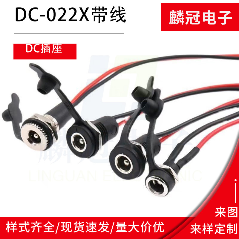 Dc 022bケーブル付き電源コンセント5.5*2.1ピン溶接線電源母座dc 022b両足電源母頭