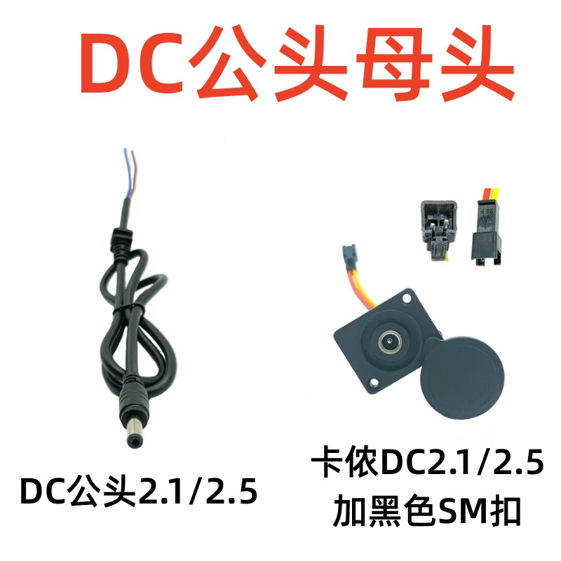 電気自動車リチウム電池充電口丸頭DC外ねじ一体丸頭2.1/2.5充電器接続線