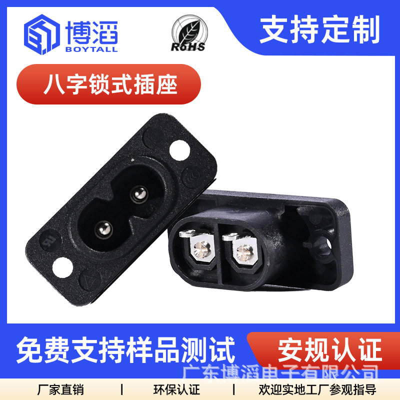 博滔安規ac電源8字公座8黒八字座固定ねじ穴付き八字ソケット