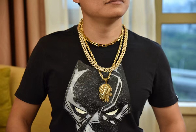 男性ヒップホップHipHop潮男Ins風ブレスレット痞帅チタン鋼色落ちしないブレスレットネックレスセット