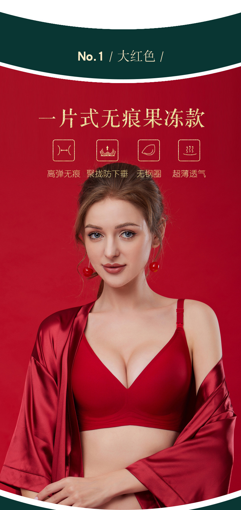 U8166大紅箱入りブラジャーセット女性本命年新年無痕一体式固定カップ快適下着