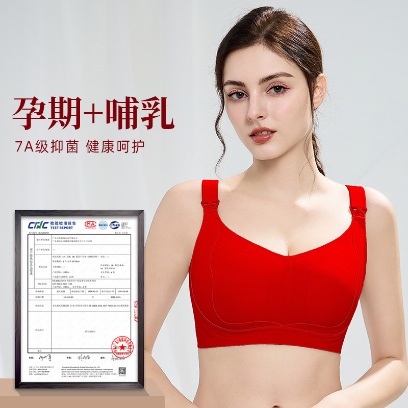 孕哺期大码孕妇内衣抗菌本命年大红色无钢圈聚拢防下垂哺乳文胸