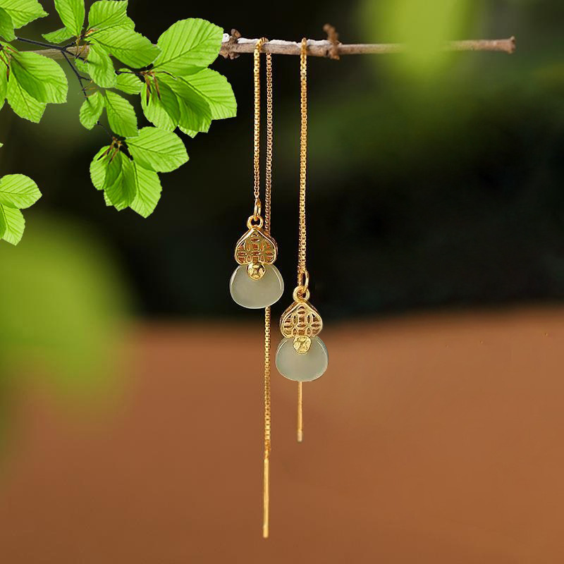 S925純銀和田青玉耳線古風復古長型流蘇女チャイナドレス硬貨錦嚢国潮耳