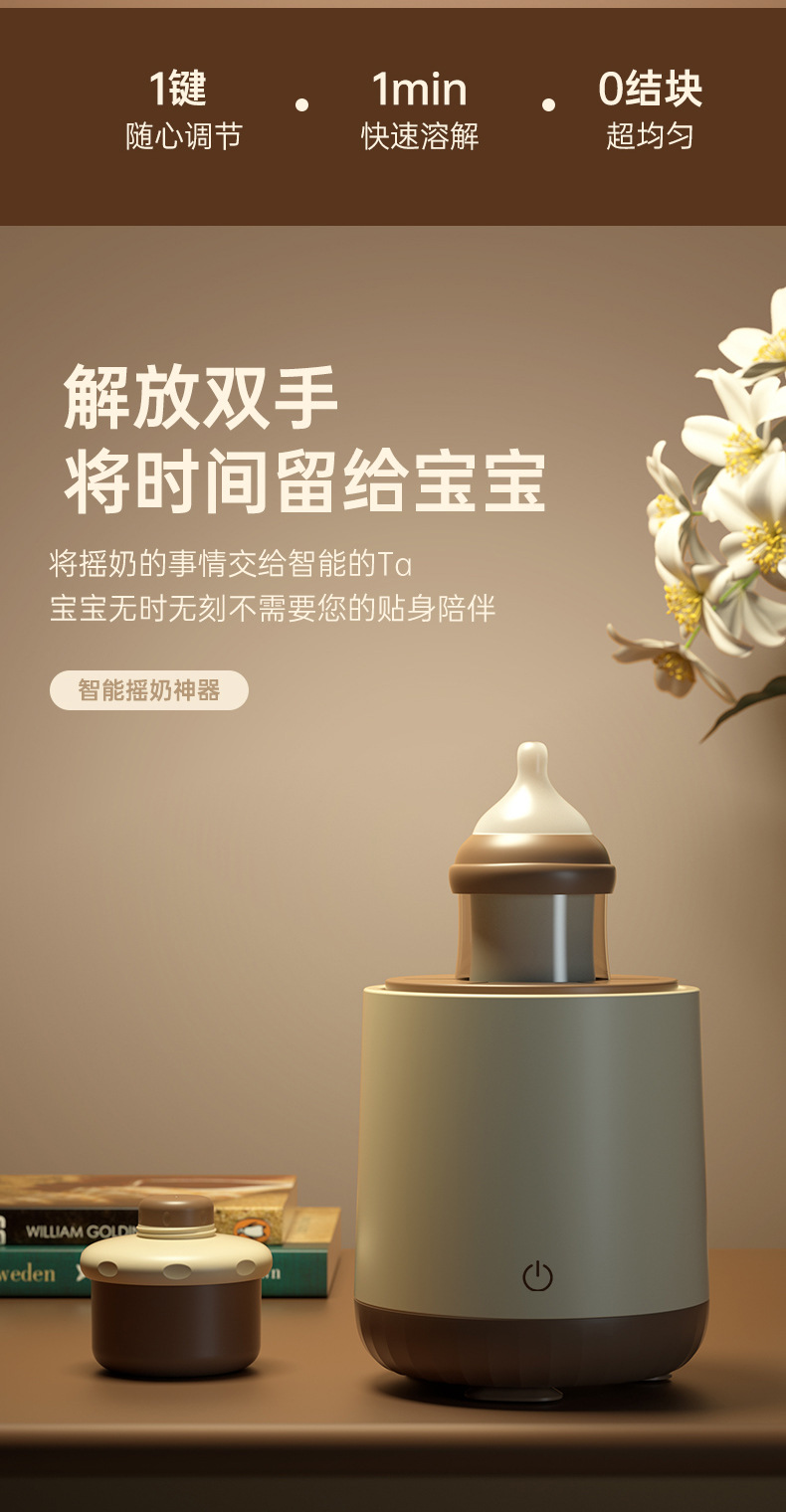 智能摇奶器家用宝宝冲奶粉均匀电动调奶器全自动婴儿泡奶机搅拌器