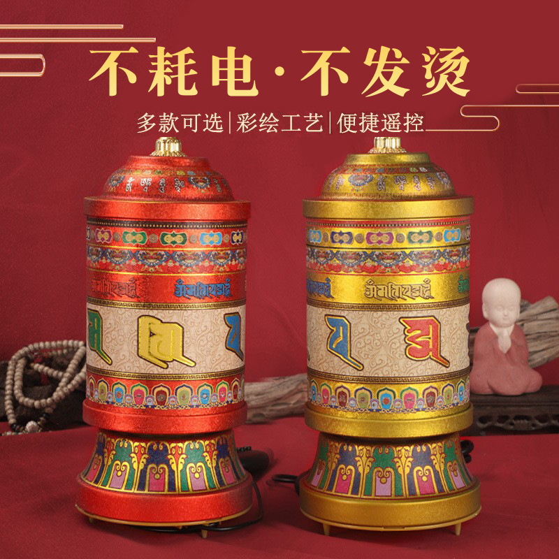 家庭用チベット式電動回転車合金彩色絵六字真言転経筒家供仏玄関テーブル置物