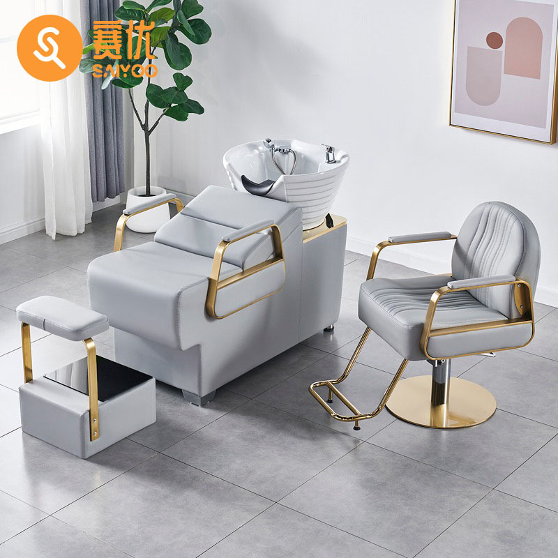 クロスボーダーシットインシャンプーベッドヘアサロンサロンハーフリクライニングフラッシングシャンプーベッドアームレスト付きシャンプーチェアメーカー卸売