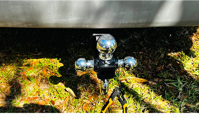 国境を越える工場で製造された調整可能なトレーラーブーム、屋外RV車載用自動車部品、炭素鋼多孔質三球頭トレーラーフック