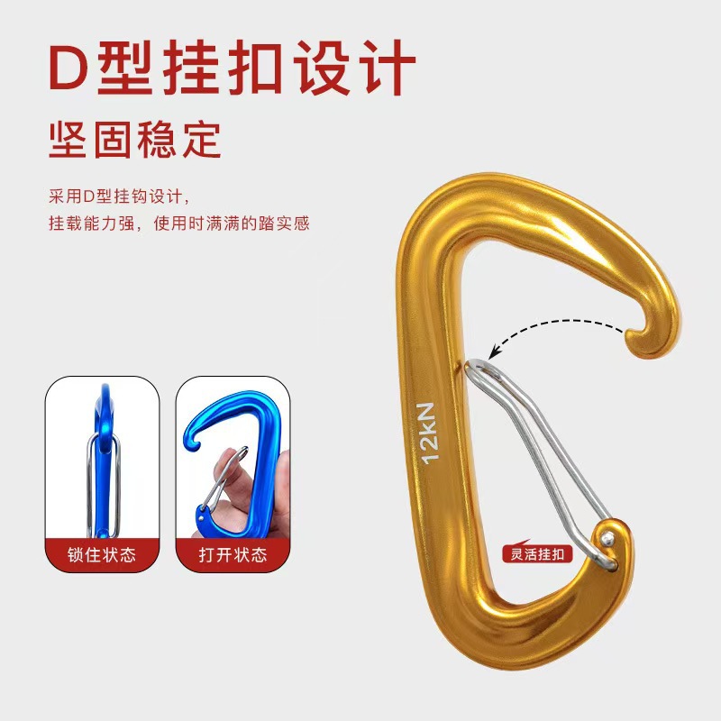 7075航空铝登山扣D型吊床登山快挂钩户外攀岩保险钩铝合金背包扣