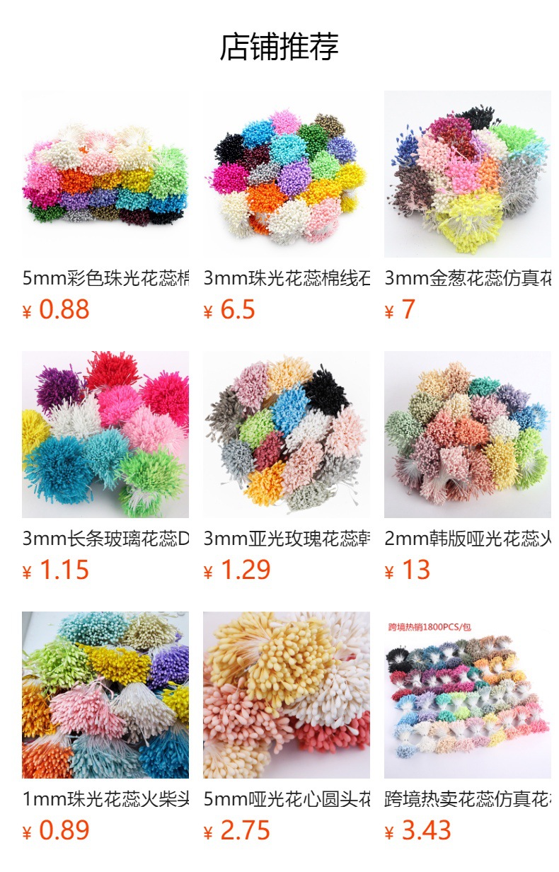 宝贝名称:1mm哑光韩版石膏花蕊diy花蕊花芯花环头饰手工装饰材料批发仿真花芯