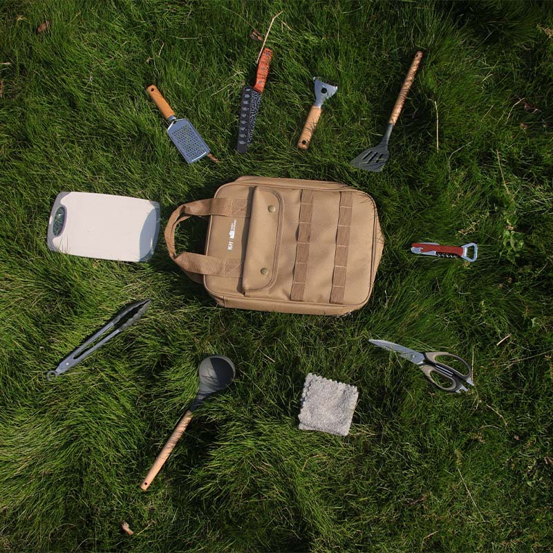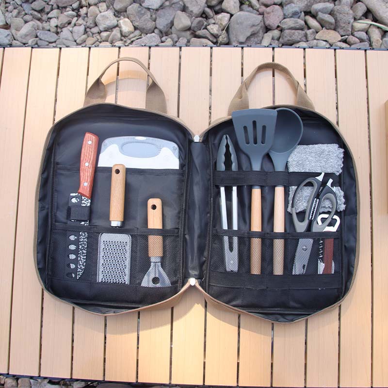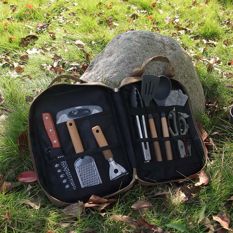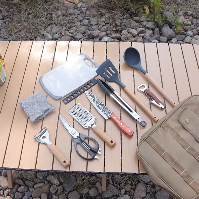 拓村屋外調理器具携帯炊飯調理器具キャンプ自分でステンレス刃物十点セット食器セット
