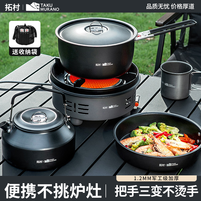 拓村户外野伴系列套锅户外汤锅露营锅具野营便携折叠套装家用套锅