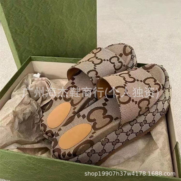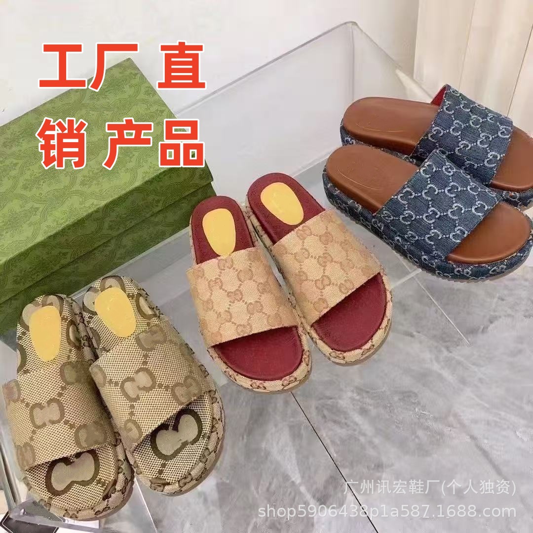 2025年新作Gホーム刺繍プリントサンダル、女性用、工場直販、厚底サンダル、刺繍入り厚底サンダル、男女兼用