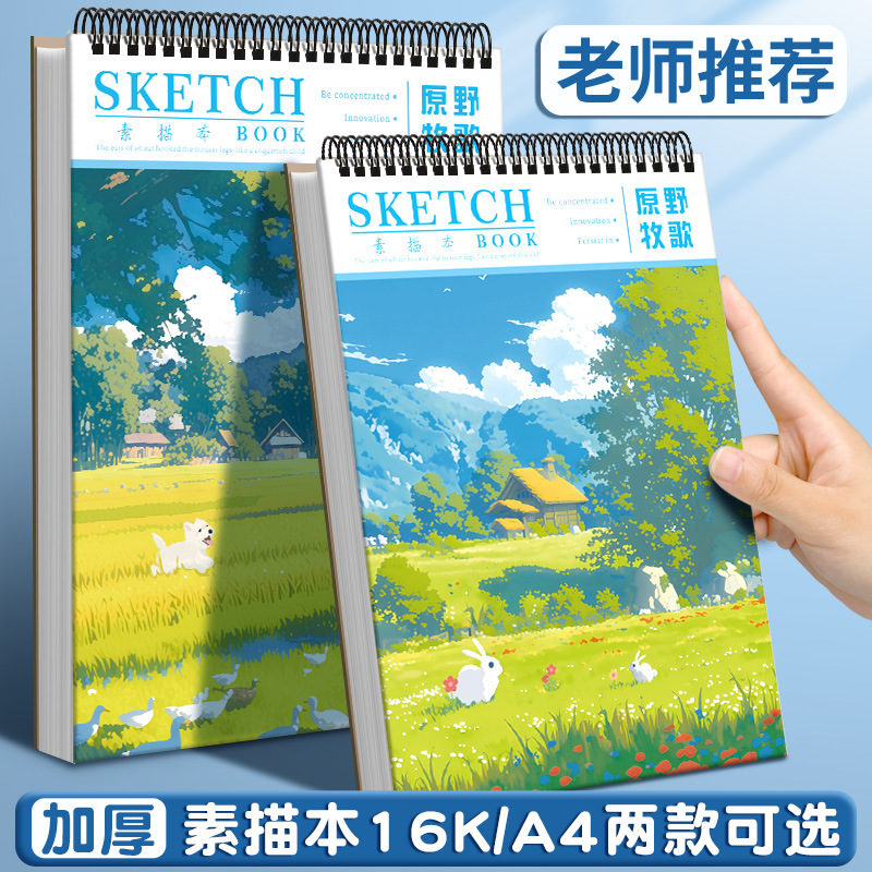 A4色鉛筆本小学生絵画スケッチ本美術手描き本スケッチ水彩子供用厚手コイル色絵