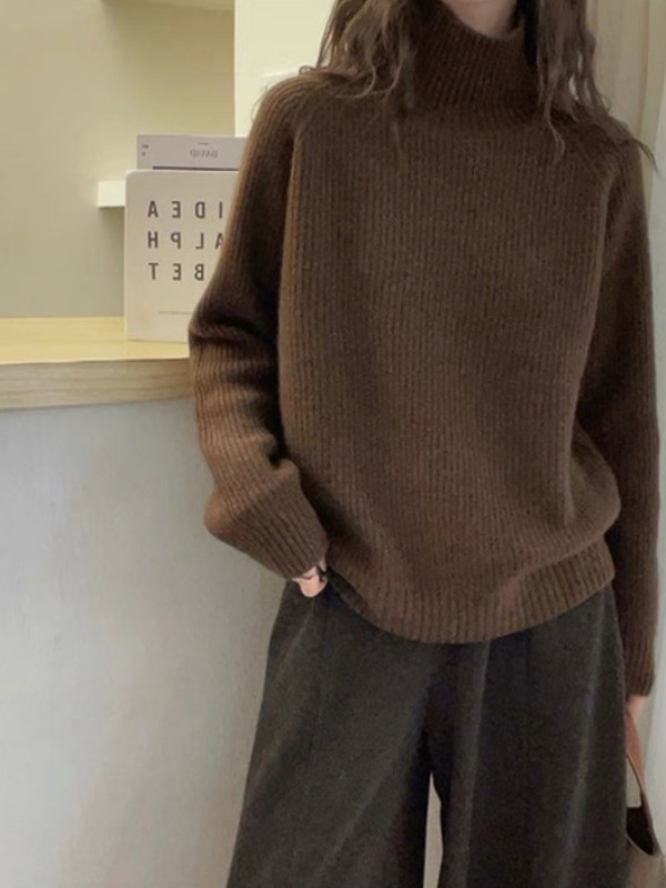 今年流行咖色软糯高领100纯羊毛衫加厚毛衣女宽松针织羊绒打底衫