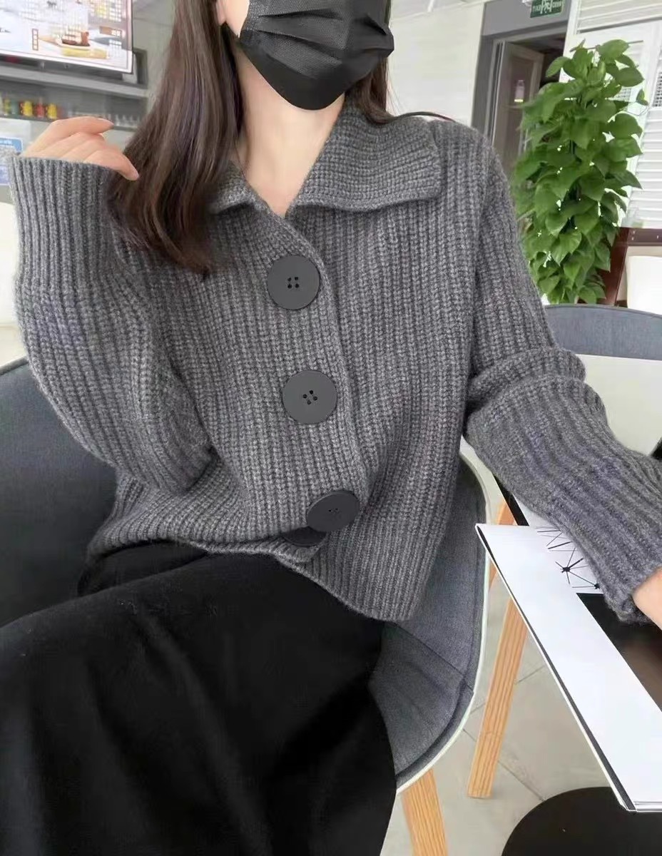25 春と秋のカシミア カーディガン レディース ルーズ ショート セーター ジャケット ソフトでワックスのようなセーター 多用途でスリムな気質
