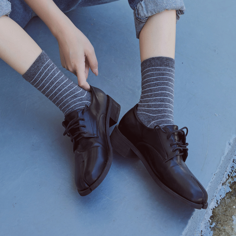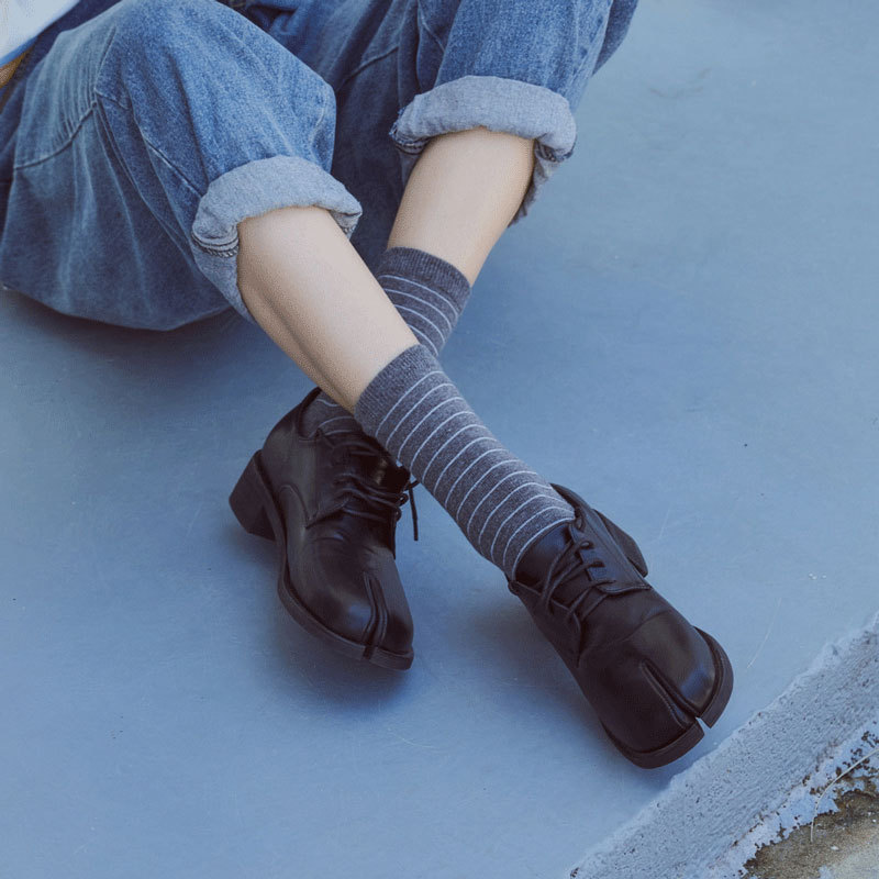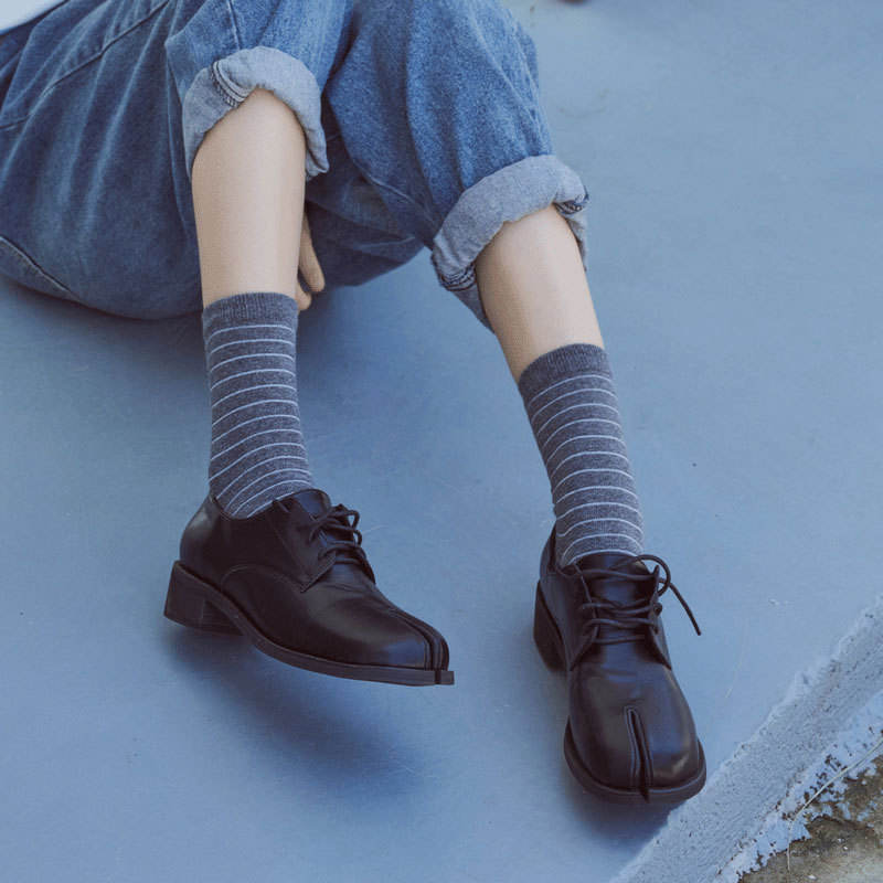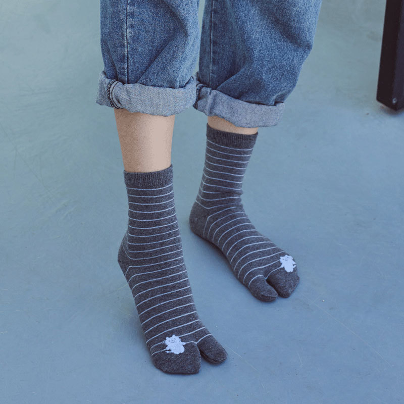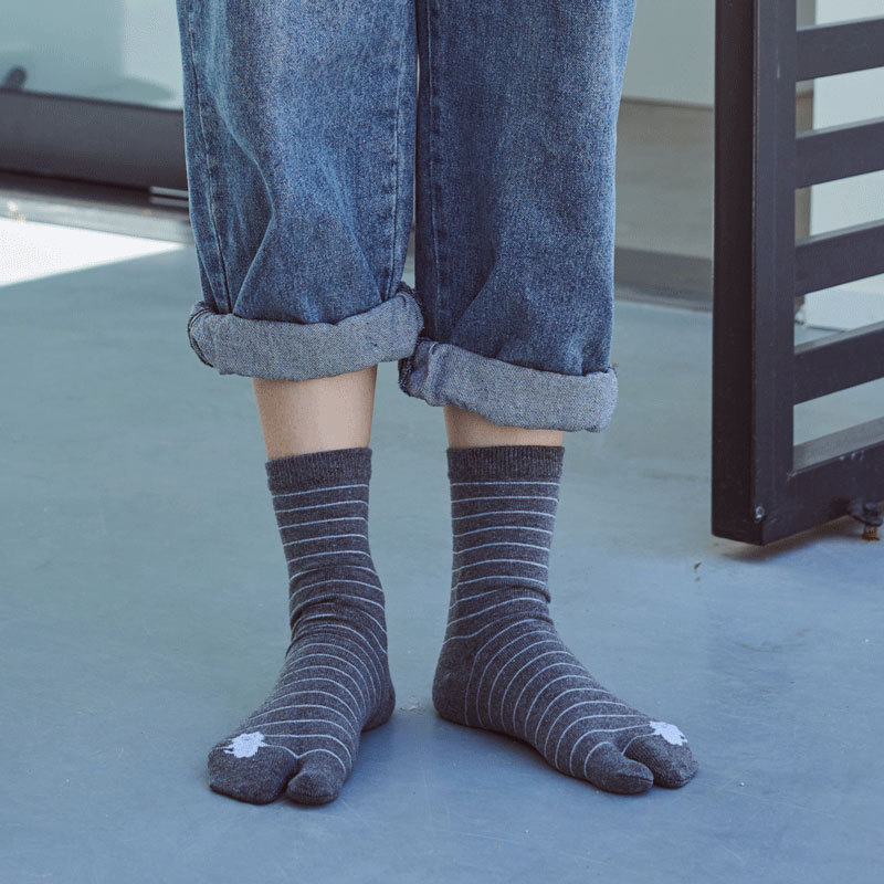 縦縞配色ミドル丈分割つま先ソックス 四季対応 ツーフィンガーソックス レディースソックス ロングソックス パイルソックス 綿ソックス 多用途