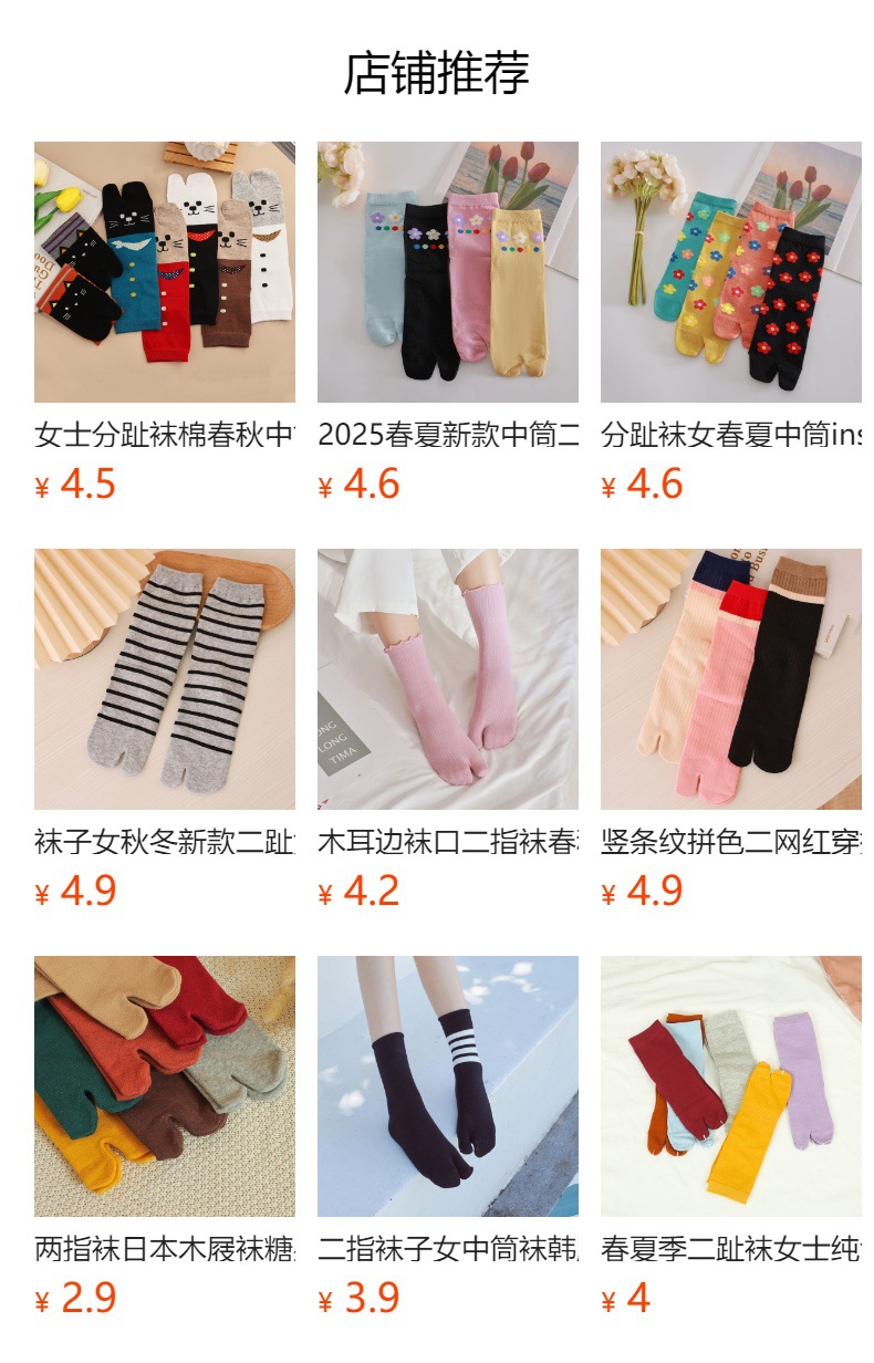 中筒二指袜中筒袜植物花卉两指袜ins潮女袜分趾袜猪蹄鞋羊蹄袜子