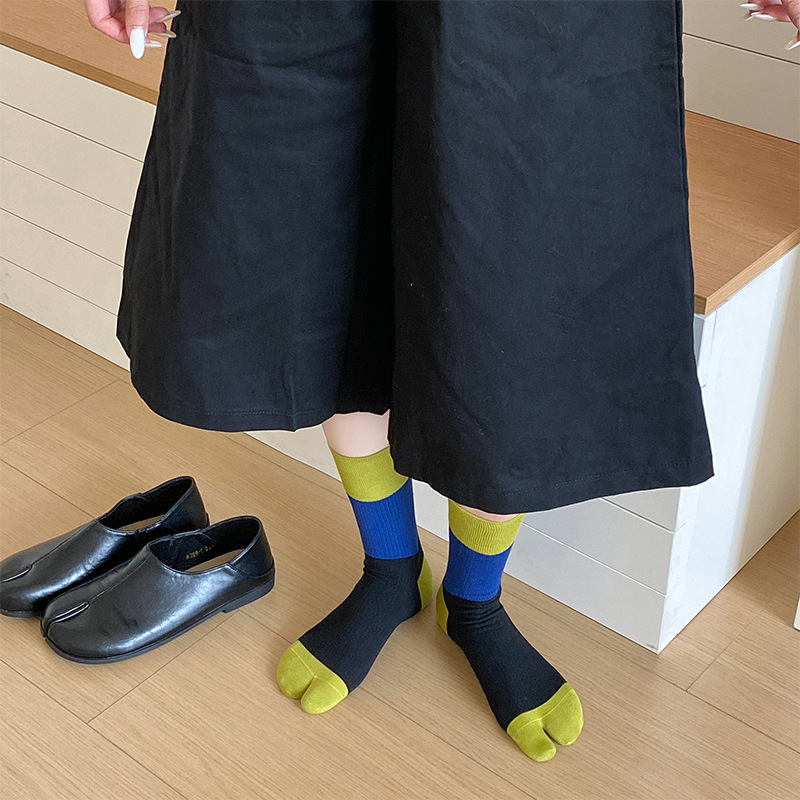 韩系撞色拼接分趾袜ins潮秋冬双拼二趾袜子女堆堆简约百搭无骨棉
